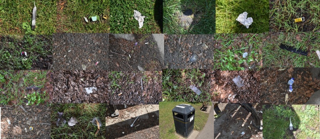 The litter today was hard was to keep track of, mainly because there was a bench and there were massive amounts again despite the bin being 6 feet away. I struggled to photograph it all.