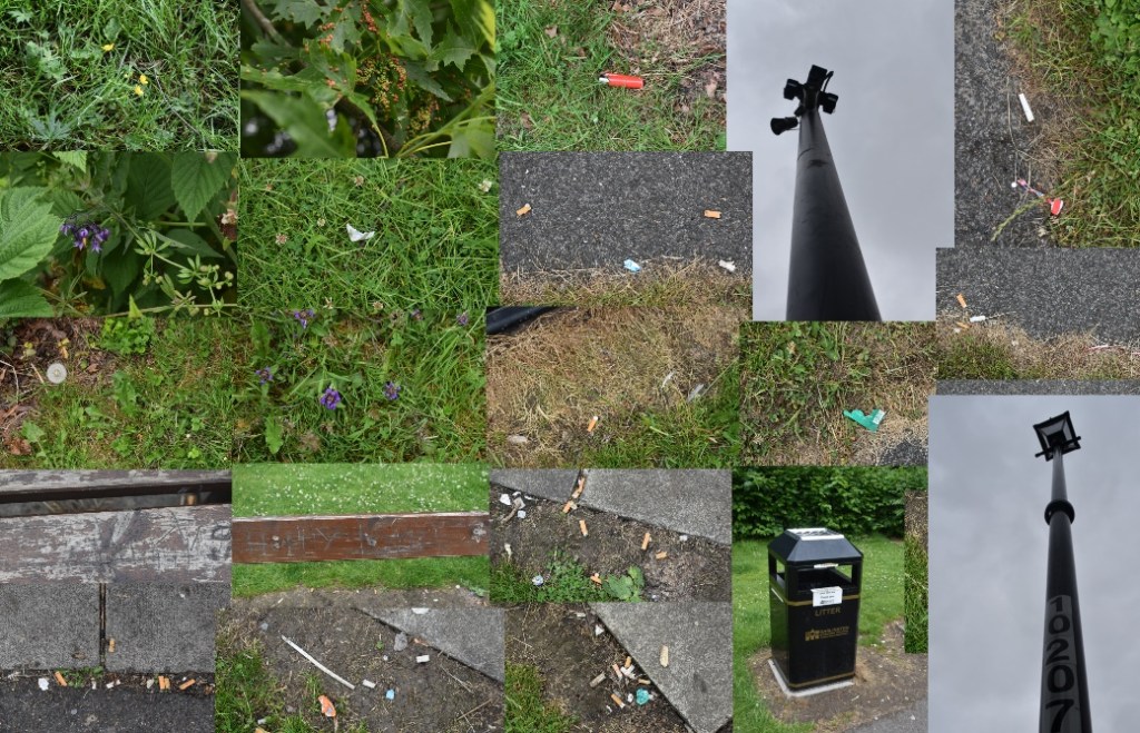 This section was green and not too full of litter, except around the bench where it is cigarette end city. Are they litter? I guess loads of people just don’t think so..