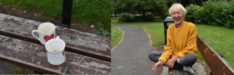 I enjoyed today, it was cool and the park was just pottering. I waved at someone I knew and then my lovely friend, who lives just round the corner turned up with 2 mugs of coffee and a croissant. So we sat on the bench and chatted, about the park and the people and so much more. Despite the fact we are surrounded by roads that are busy town roads with lots of activity it feels like we are sitting in a peaceful environment which make your heart feel happy. You wonder what does go on in all the houses that surround us though, so many different people overlooking and watching. Also the CCTV camera, what does that tell us?