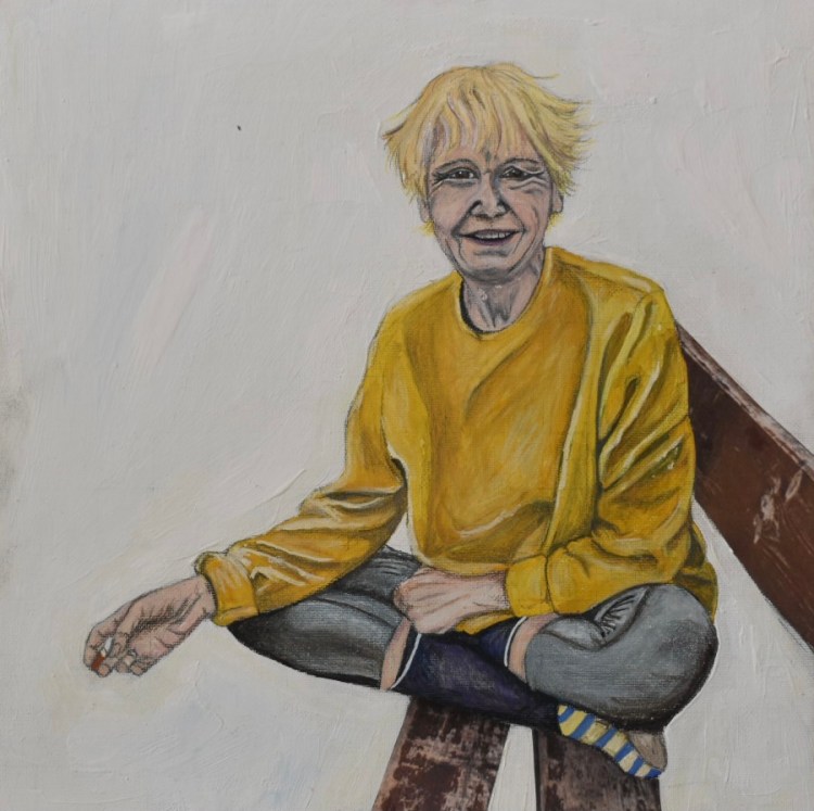 Relaxing – gouache, pencil and collage on board- 30x30cm