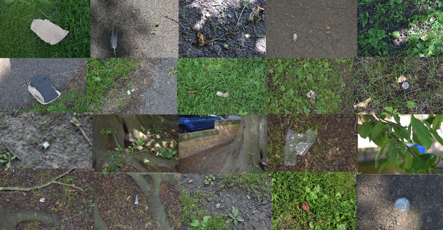 This section didn’t have too much litter, most on the court, but lots of undergrowth: 4 trees, tennis court tarmac, paving path, 1 branch in the cage, undergrowth, door, padlock, spiders webs, sign, 1 mushroom, 28 pieces of litter, 9 feathers, tennis net post.